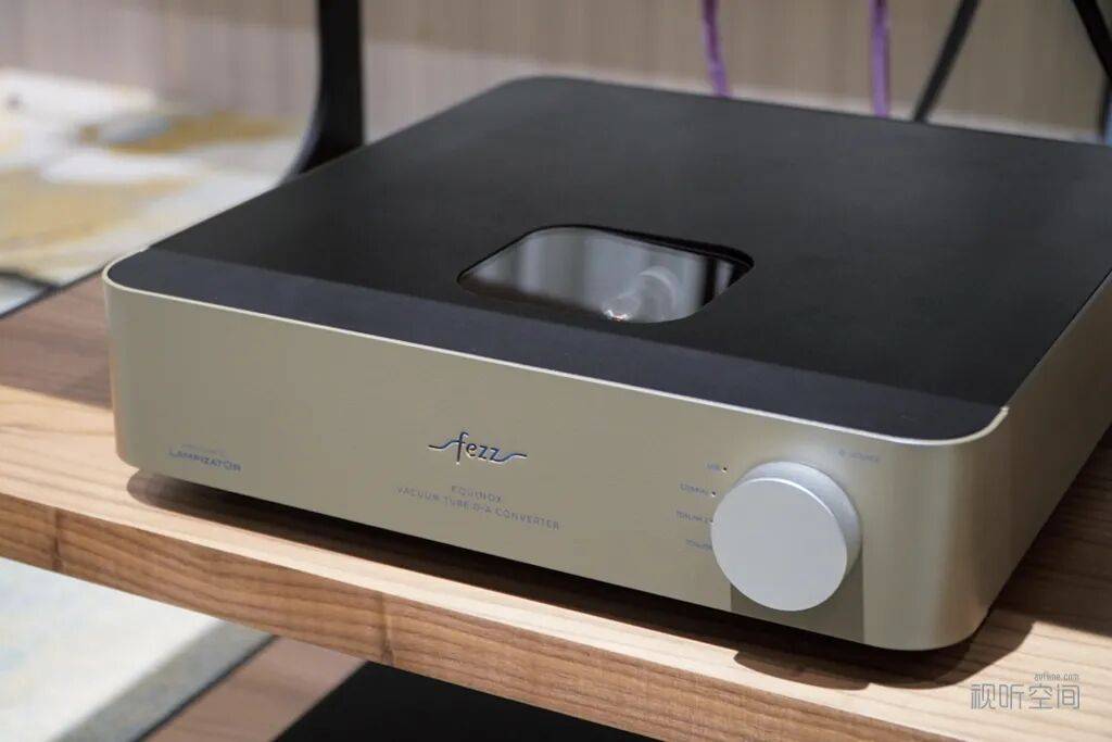 这次试听时搭配了FEZZ的Equinox DAC。这款解码器是由波兰品牌FEZZ Audio推出的一款电子管解码器,其核心亮点在于搭载了同样是来自波兰的高端解码器厂家Lampizator的技术授权,由知名设计师Łukasz Fikus操刀,是市面上唯一获得Lampizator官方授权的电子管DAC。Equinox DAC采用Burr Brown PCM1794解码芯片,搭载1支ECC82/12AU7电子管,为数字信号注入温暖音色,减少数字冷硬感,提升音乐感染力。电子管位于顶部滑动玻璃面板下,用户可轻松更换不同品牌的电子管,调整音色风格。