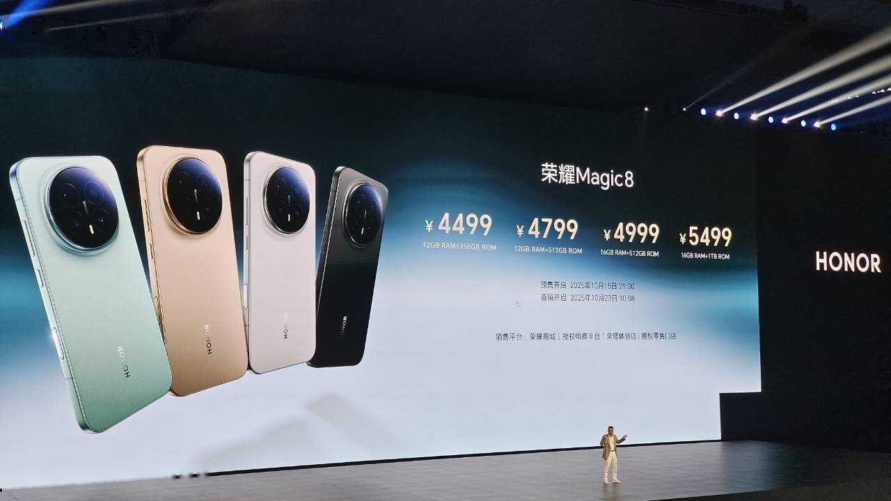 IT之家 10 月 15 日消息,荣耀正在举行“见新局・见未来”HGDC 发布会,推出 Magic 8 系列智能手机,搭载第五代骁龙 8 至尊版芯片,配合MagicOS 10 系统可实现多种 AI 功能,将在今晚 9 点半开启预售,10 月 23 日上午 10:08 正式开启预售。