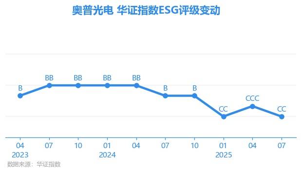 日前,华证指数公布了新一期(2025年7月31日)的ESG评级结果,奥普光电(002338.SZ)获得CC评级(华证指数评级为C起至AAA九档,C为最低档,AAA为其最高一级评级/AA为其第二档),上一期(2025年4月30日)ESG评级为CCC。本期ESG评级在70家航空航天与国防行业A股上市公司中排名第49(上一期排名第39)。