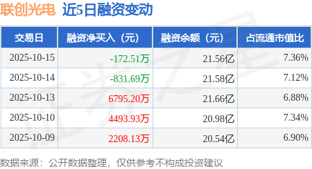 证券之星消息,10月15日,联创光电(600363)融资买入2.06亿元,融资偿还2.08亿元,融资净卖出172.51万元,融资余额21.56亿元,近20个交易日中有11个交易日出现融资净买入。