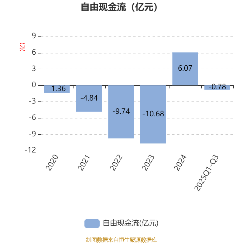 2025年前三季度,公司经营活动现金流净额为1.9亿元,同比下降72.19%;筹资活动现金流净额-3.01亿元,同比增加1.64亿元;投资活动现金流净额-2539.58万元,上年同期为-2.54亿元。