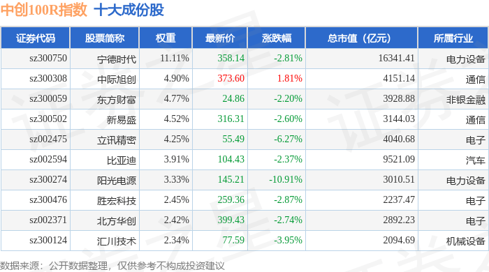 资金流向方面,中创100R(399611)指数成份股当日主力资金净流出合计204.89亿元,游资资金净流入合计52.13亿元,散户资金净流入合计152.76亿元。成份股资金流向详情见下表: