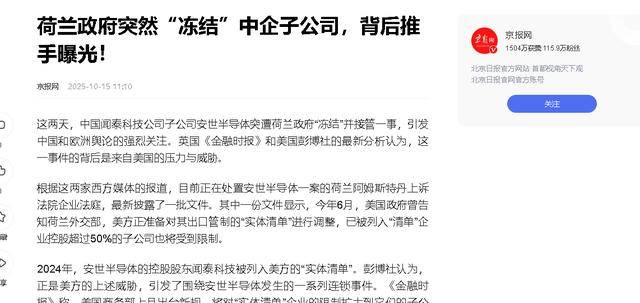 说到底,荷兰的困境都是咎由自取。如果当初能遵守商业规则,尊重中资企业的合法权益,何至于落到光刻机可能停产、牵连欧洲产业的地步?