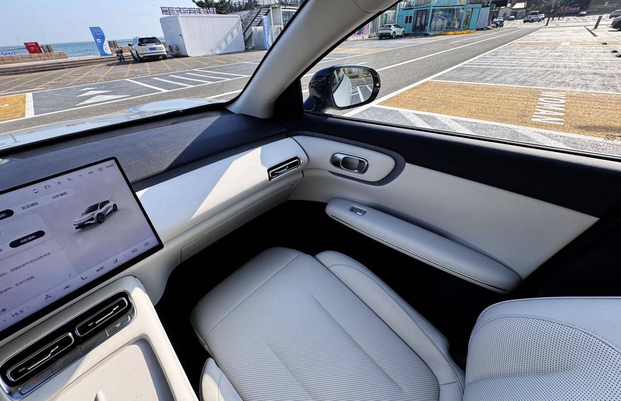 副驾驶的体验尤其值得一提——座椅配备了电动调节和一体式腿托,靠背角度舒适。坐上去,双腿能自然放平,整个人都被包裹进去。