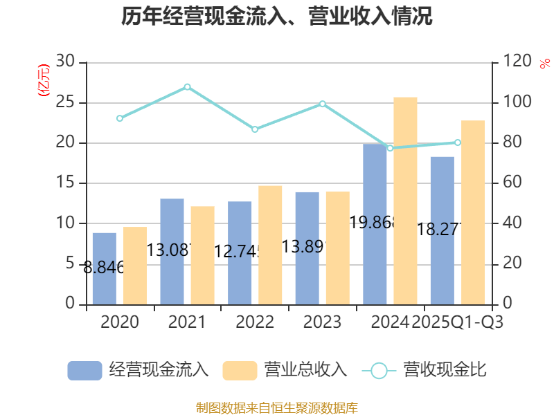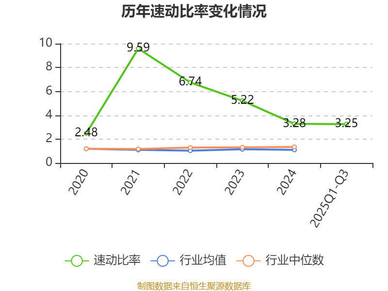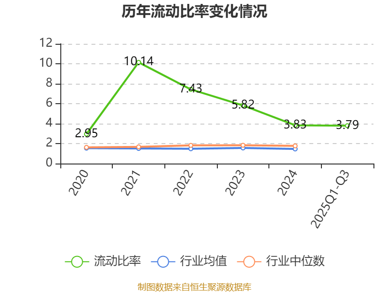 2025年前三季度,公司流动比率为3.79,速动比率为3.25。