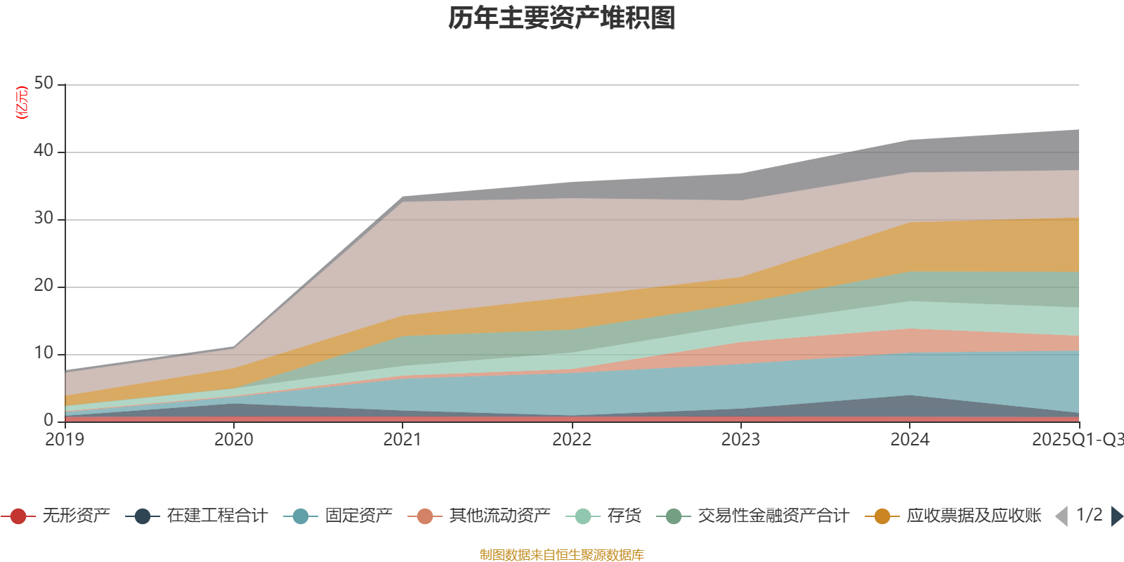 资产重大变化方面,截至2025年三季度末,公司在建工程合计较上年末减少81.16%,占公司总资产比重下降6.28个百分点;固定资产较上年末增加46.72%,占公司总资产比重上升6.26个百分点;其他流动资产较上年末减少38.68%,占公司总资产比重下降3.51个百分点;应收款项融资较上年末增加116.19%,占公司总资产比重上升2.13个百分点。