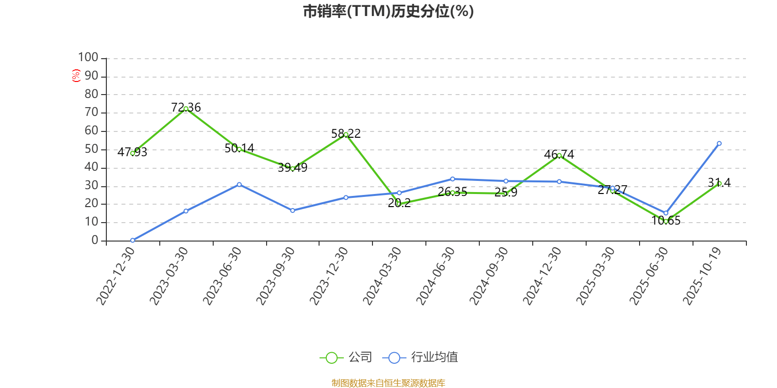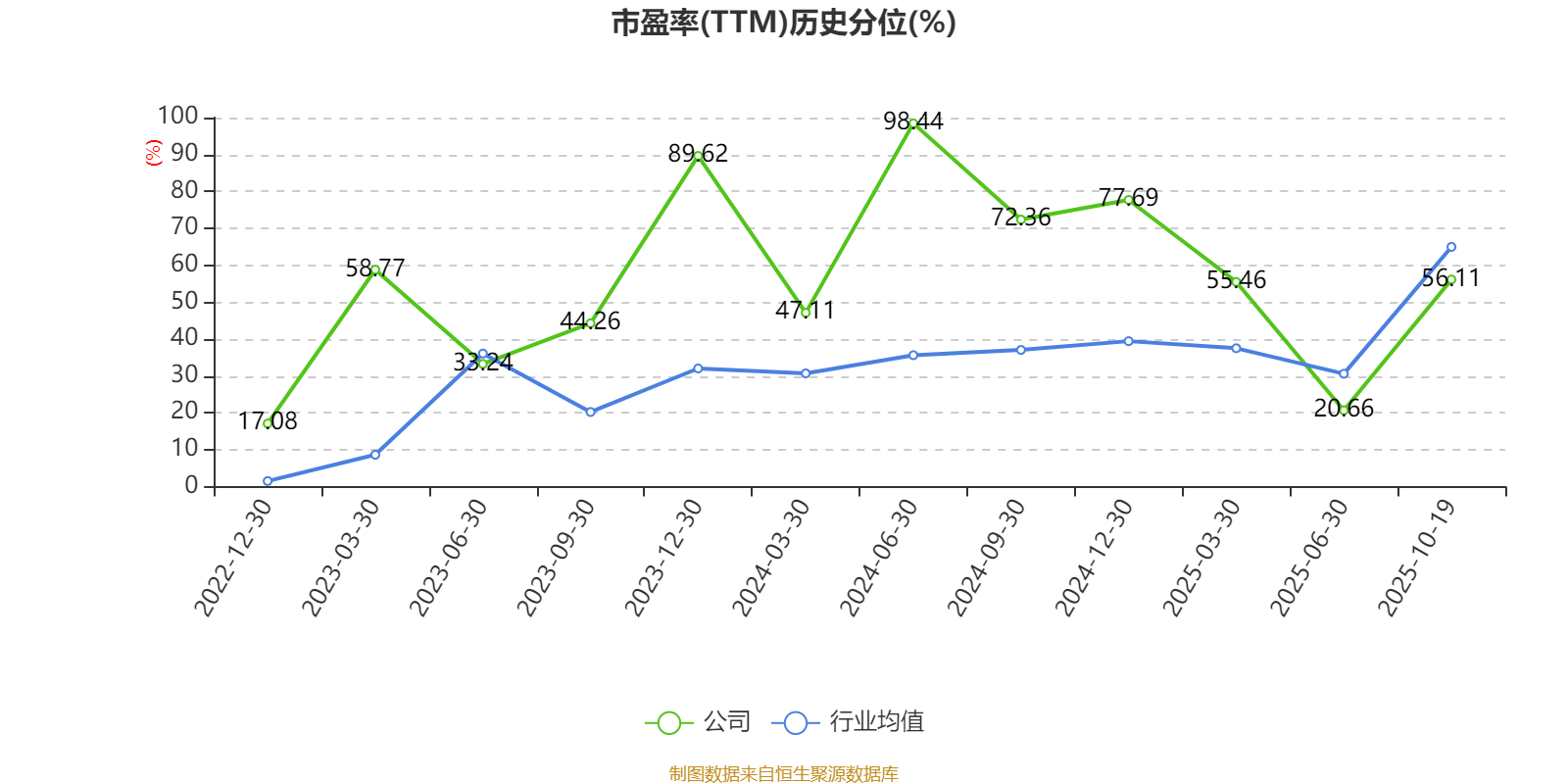 市盈率、市净率为负时,不显示当期分位数,会导致折线图中断。