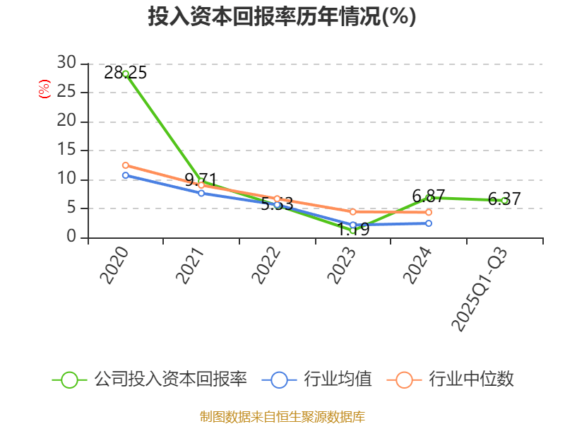 盈利能力方面, 2025年前三季度公司加权平均净资产收益率为6.69%,同比上升1.13个百分点。公司2025年前三季度投入资本回报率为6.37%,较上年同期上升1.23个百分点。