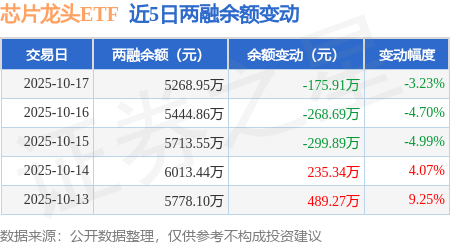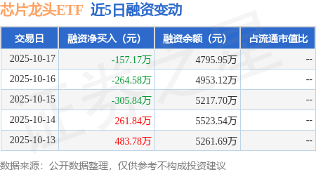 证券之星消息,10月17日,芯片龙头ETF(516640)融资买入813.67万元,融资偿还970.84万元,融资净卖出157.17万元,融资余额4795.95万元,近20个交易日中有13个交易日出现融资净买入。