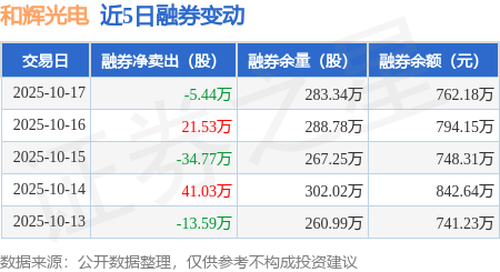 融券方面,当日融券卖出18.11万股,融券偿还23.55万股,融券净买入5.44万股,融券余量283.34万股。