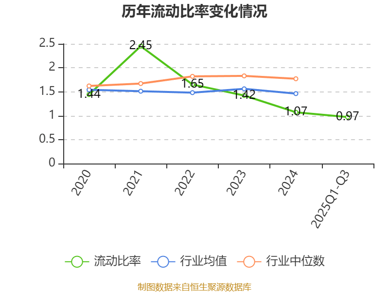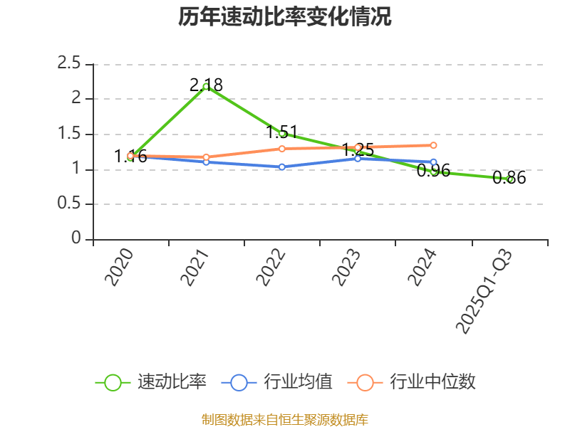 2025年前三季度,公司流动比率为0.97,速动比率为0.86。