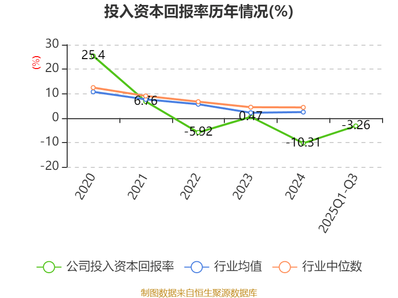 盈利能力方面, 2025年前三季度公司加权平均净资产收益率为-3.88%,同比上升4.17个百分点。公司2025年前三季度投入资本回报率为-3.26%,较上年同期上升2.99个百分点。