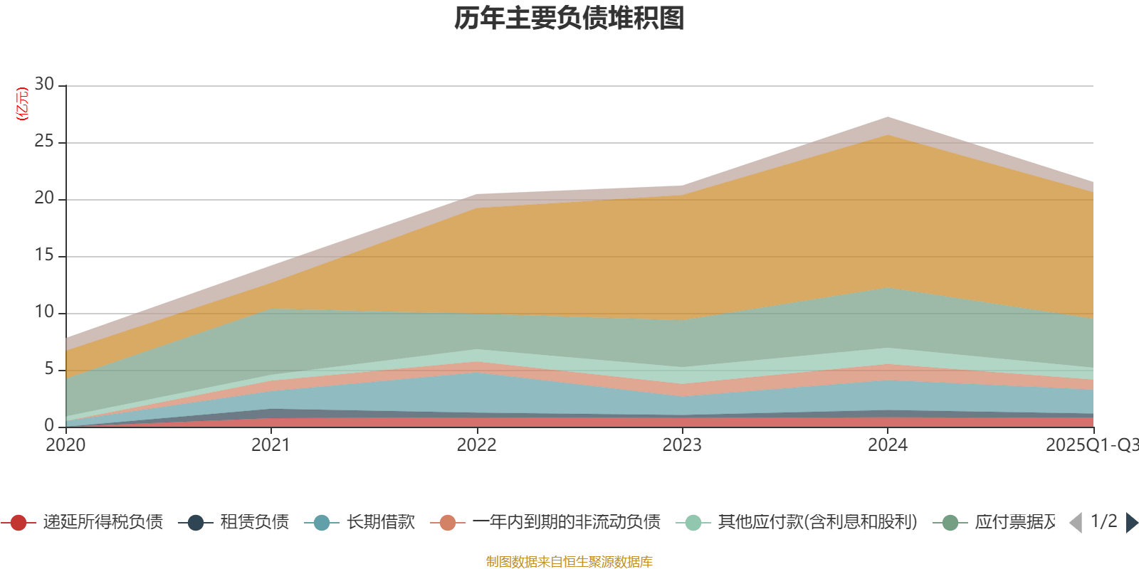 负债重大变化方面,截至2025年三季度末,公司短期借款较上年末减少17.27%,占公司总资产比重下降1.13个百分点;一年内到期的非流动负债较上年末减少37.65%,占公司总资产比重下降0.76个百分点;应付票据及应付账款较上年末减少18.55%,占公司总资产比重下降0.6个百分点;预计负债较上年末减少100%,占公司总资产比重下降0.54个百分点。