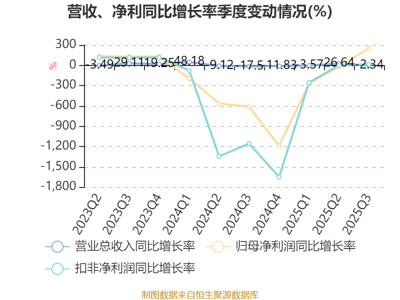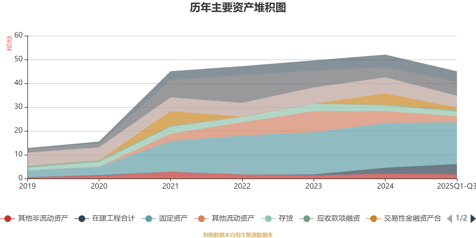 资产重大变化方面,截至2025年三季度末,公司交易性金融资产合计较上年末减少76.03%,占公司总资产比重下降6.6个百分点;在建工程合计较上年末增加74.37%,占公司总资产比重上升4.92个百分点;货币资金较上年末增加36.02%,占公司总资产比重上升4.71个百分点;其他流动资产较上年末减少49.37%,占公司总资产比重下降3.98个百分点。