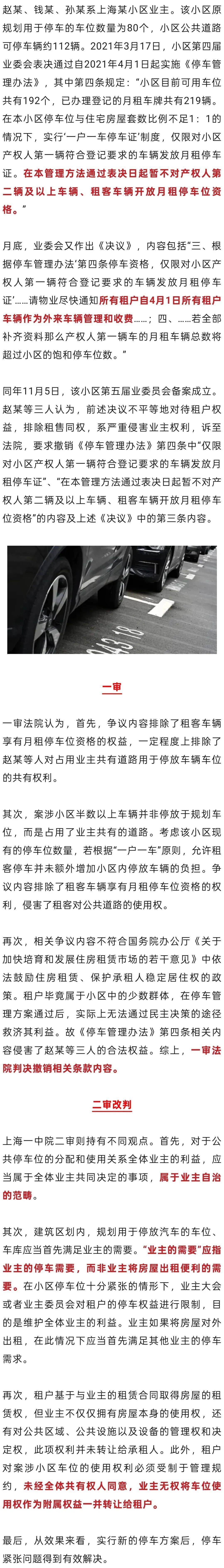 昨天,上海市第一中级人民法院发布了一起因区别对待业主、租客停车权引发纠纷的案件。该案入选了中国法院2025年度案例。