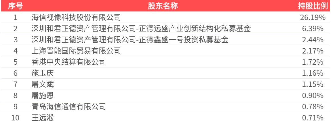 公司股东户数为5.43万户,前十大股东持股数量为4.01亿股,占总股本比例为43.62%,前十大股东持股情况如下: