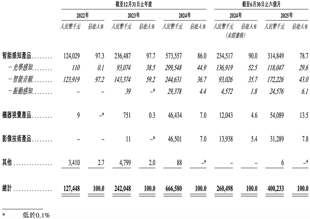 2025年上半年,智能感知产品、机器视觉产品、影像技术产品分别贡献了聚芯微78.7%、13.5%、7.8%的收入。