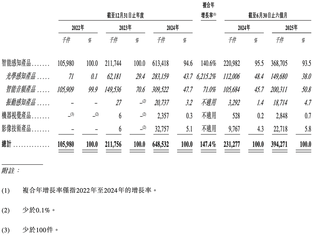 根据灼识咨询的数据,聚芯微的光学感知产品、智能音频功放、LRA驱动芯片产品,于往绩记录期间累计出货量分别约4.95亿颗、7.65亿颗、0.40亿颗。