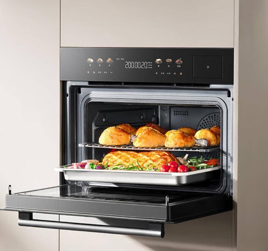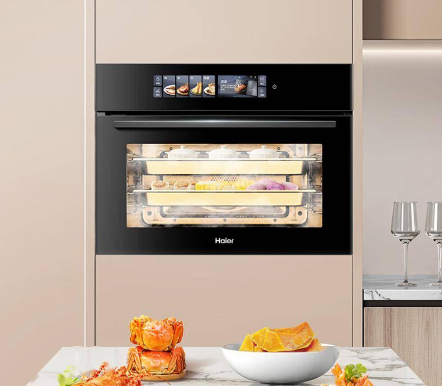 “瞬蒸”技术能快速产出大量饱满蒸汽,瞬间包裹食物,锁住原汁原味,蒸鱼蒸虾口感鲜嫩不柴。4D立体热风系统确保了腔内热量的均匀分布,烤制食物时上色更均匀。自清洁功能则解决了清洁难题,通过高温蒸汽软化油污,让后续打理变得省心省力。此外,作为“麦浪套系”的一员,它能与其他海尔智能家电互联,构建智慧厨房生态,适合追求时尚科技感和便捷清洁的用户。
