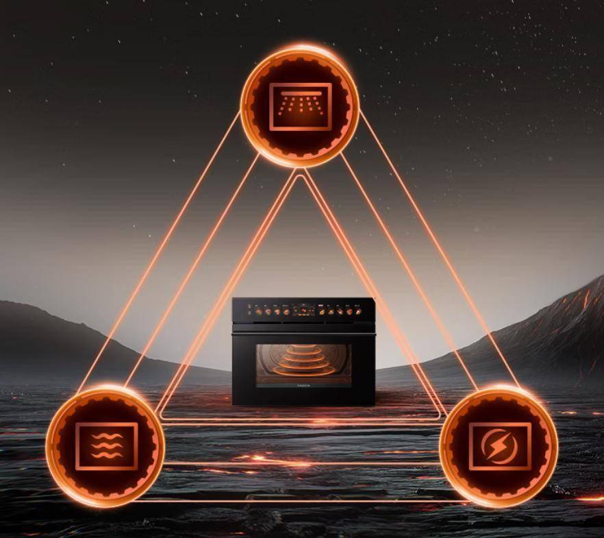 凯度此款新品最大的亮点在于其“双热风”技术和极具未来感的“19英寸画境大彩屏”。双热风系统通过两组独立控制的风扇实现更强劲、更均匀的立体热风循环,升温速度更快,腔内温差更小,特别适合对烘焙温控要求极高的用户,能轻松实现专业级别的烘焙效果。