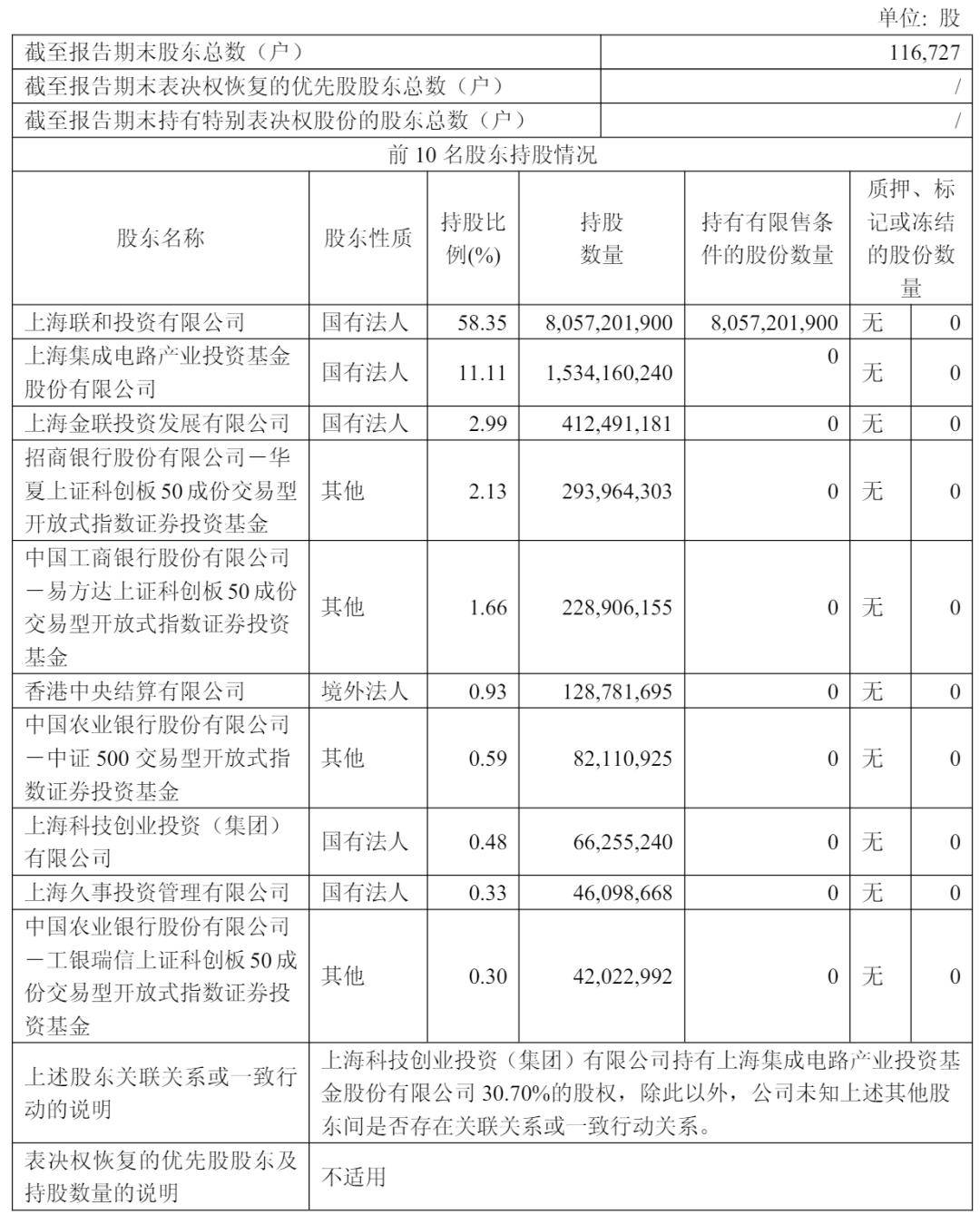 截至2025年6月30日,上海联和持股为58.35%,集成电路基金公司持股为11.11%,上海金联持股为2.99%。