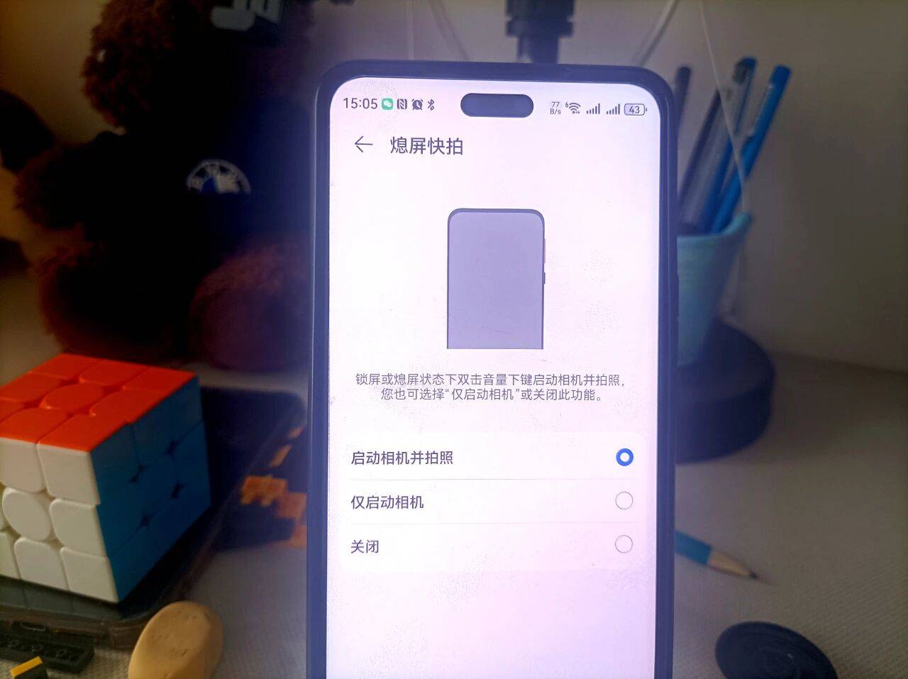 这个时候,手机的“熄屏快拍”功能就可以派上用场了。