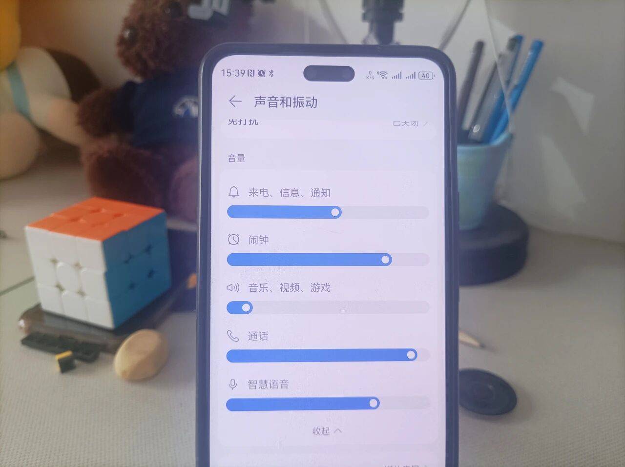 这个时候,只要点一下设置图标,就会瞬间进入音量调节页面,可以很方便地对手机的各种音量进行调节。