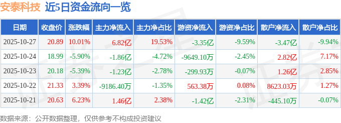 10月27日的资金流向数据方面,主力资金净流入6.82亿元,占总成交额19.53%,游资资金净流出3.35亿元,占总成交额9.59%,散户资金净流出3.47亿元,占总成交额9.94%。