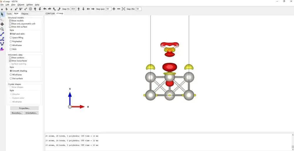 最后用h2o-s1的电荷减去h2o-s2和h2o-s3的电荷,即可得到差分电荷,可用VESTA处理作图