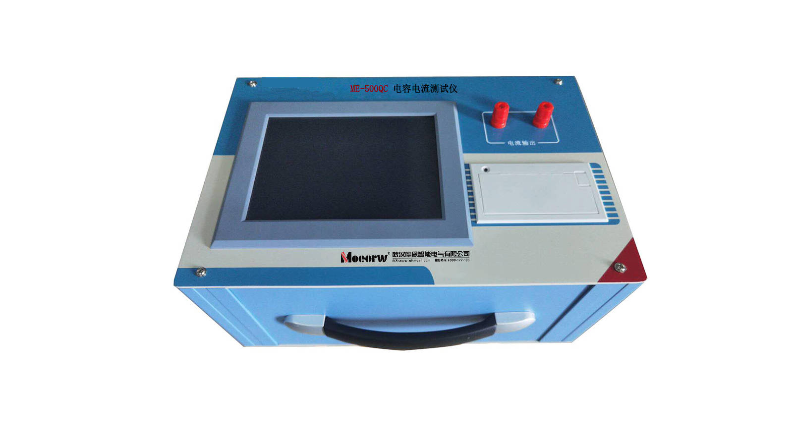 ☆ 测量误差:(三相对地总电容3μF (三相对地总电容90μF< CX<250μF时测量精度±10%) ☆ 工作温度:-10℃~50℃ ☆ 工作湿度:0~80% ☆ 工作电源:AC 220V±10% 50Hz±1Hz ☆ 外行尺寸:350mm×200mm×150mm ☆ 仪器重量:2.5kg ☆ 使用电网电压等级:1kV~66kV ME-500QC 电容电流测试仪功能特点 ☆ 原理:通过PT二次侧开口三角形异频感应测试。 ☆ 接线简单:输入接线通过PT二次侧开口三角形。 ☆ 安全可靠:低压操作,异频小信号,对PT的保护和测量信号无影响。 ☆ 使用方便:不停电测试。 ☆ 操作方便:8寸触摸屏液晶显示,中文菜单,人机对话页面友好,具有电子万年历实时显示,RS232数据实时通信,数据存储,打印,仪器具有帮助文档,仪器操作简单方便。