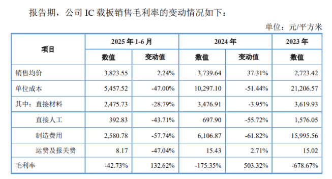 为开拓新业绩增长点,红板科技自2020年起布局IC载板产品,其载板工厂于2022年底投产。但受产能爬坡阶段固定生产成本较高的影响,2022年至2024年期间,公司IC载板、类载板的毛利率分别为-202.50%、-452.04%和-141.86%,显著拉低了主营业务整体毛利率。