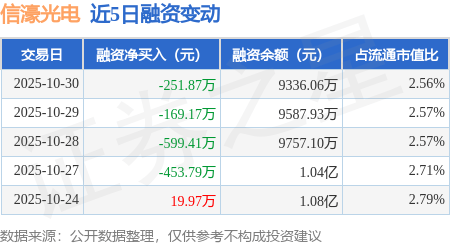 证券之星消息,10月30日,信濠光电(301051)融资买入342.15万元,融资偿还594.02万元,融资净卖出251.87万元,融资余额9336.06万元。