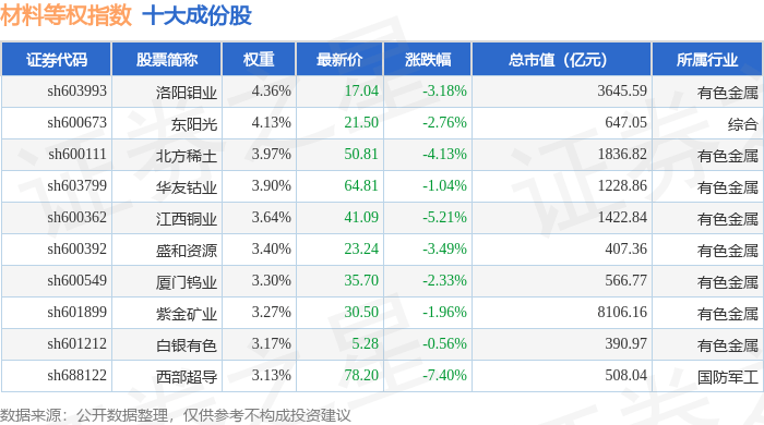 证券之星消息,10月31日,材料等权(000071)指数报收于4507.43点,跌1.7%,成交731.21亿元,换手率2.06%。当日该指数成份股中,上涨的有14家,凯赛生物以2.44%的涨幅领涨,下跌的有34家,西部超导以7.4%的跌幅领跌。