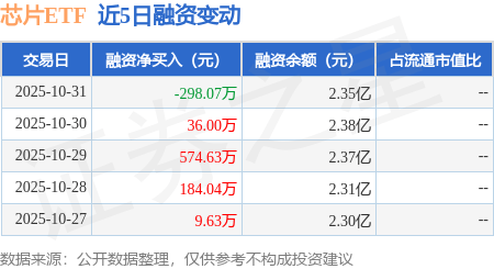 证券之星消息,10月31日,芯片ETF(512760)融资买入4343.82万元,融资偿还4641.89万元,融资净卖出298.07万元,融资余额2.35亿元,近20个交易日中有14个交易日出现融资净买入。