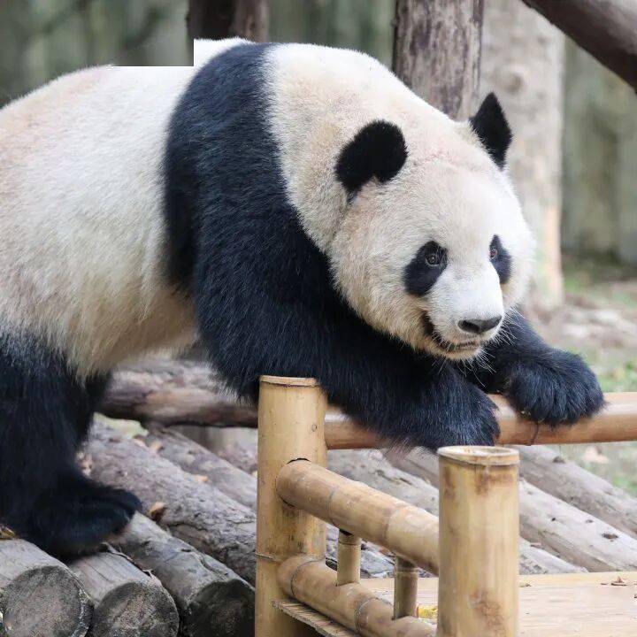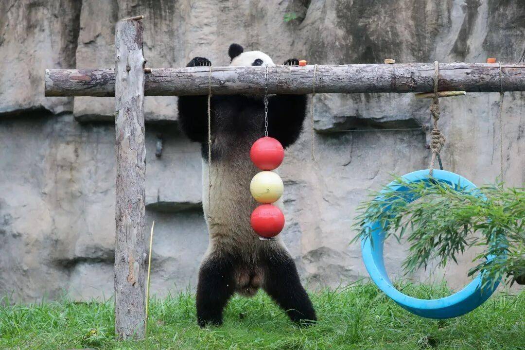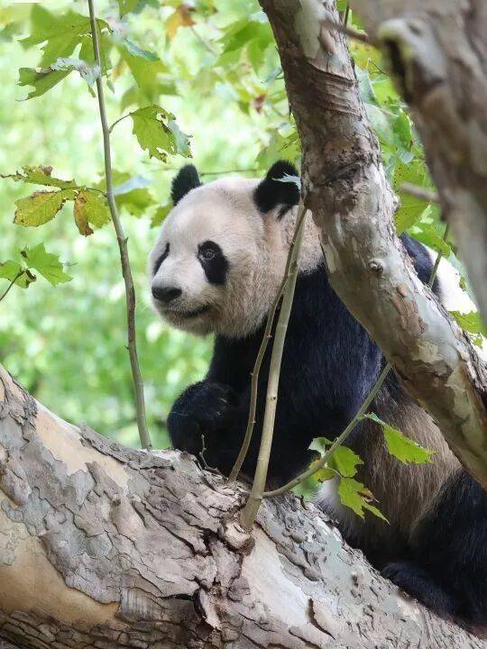 平日里懒洋洋的“滚滚”们,久违来到室外活动场,立刻化身武林高手,兴奋地四处标记领地,一会爬上树蹭几下,一会在草地上打滚,一会又静静地坐在石头上感受秋日气息。凉爽的天气让它们食欲与活力双在线,抱着竹子竹笋大快朵颐。