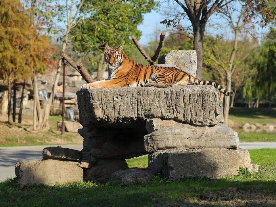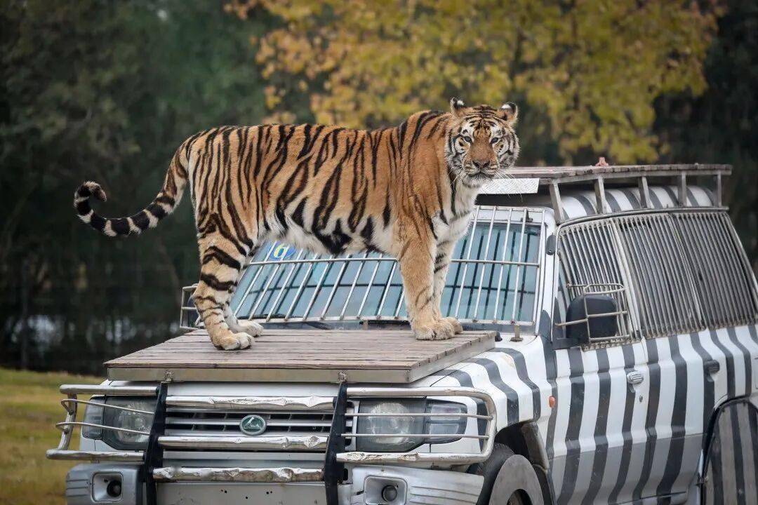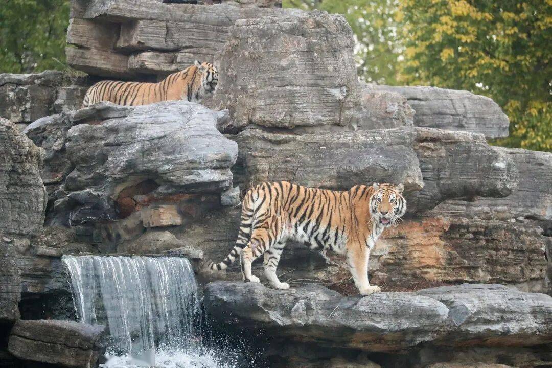它们或霸气地站在斑马车上“俯瞰领地”,或结伴在林间小路上“巡逻”,又或是在岩石瀑布旁展现“王者风范”,每一步都透着“这凉爽天气,正合我意”的霸气。