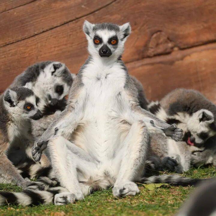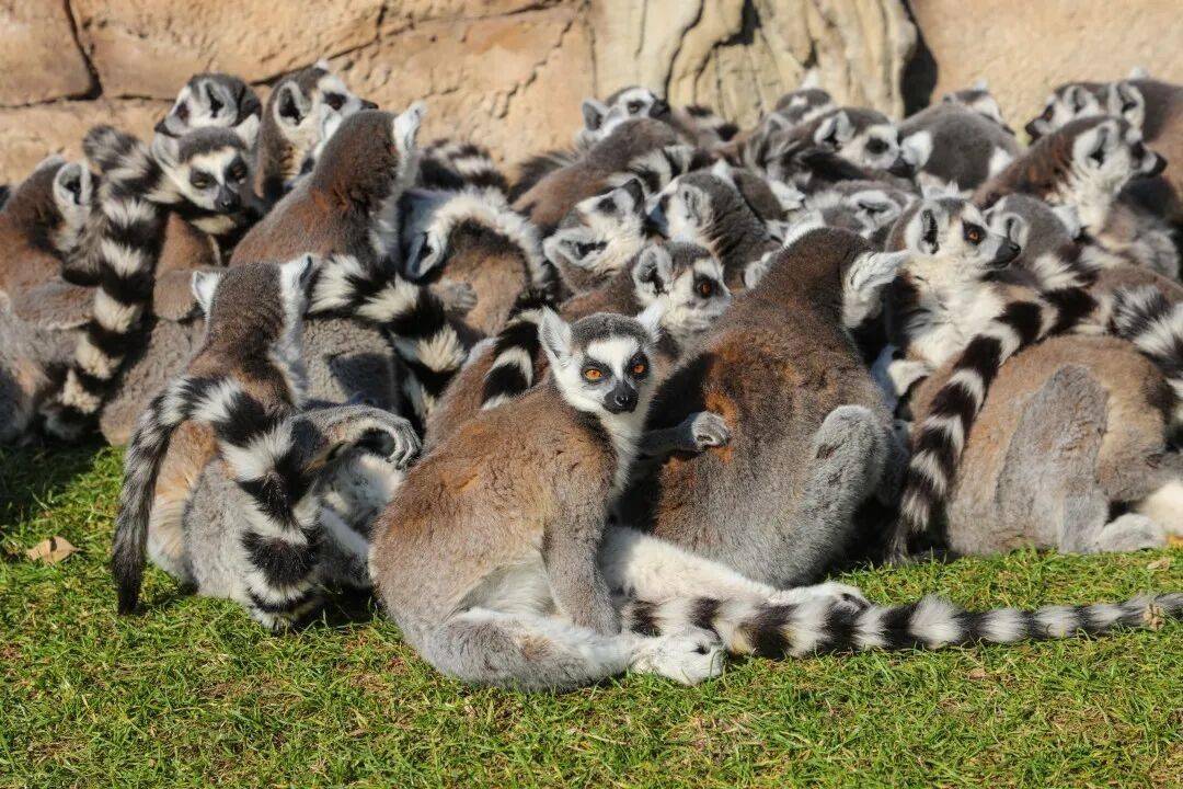 随着秋日暖阳在狐猴岛上升起,神奇又有趣的画面也即将上演。狐猴们纷纷找到一个面朝太阳,阳光最充足的地方,排排坐,缓缓张开双臂拥抱太阳,感受温暖,像是世界上最忠诚的“太阳崇拜者”。有时也会十几个伙伴聚在一起,尾巴互相缠绕,紧紧相拥,享受日光浴。