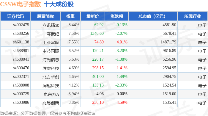 CSSW电子(399811)指数十大成份股详情如下: