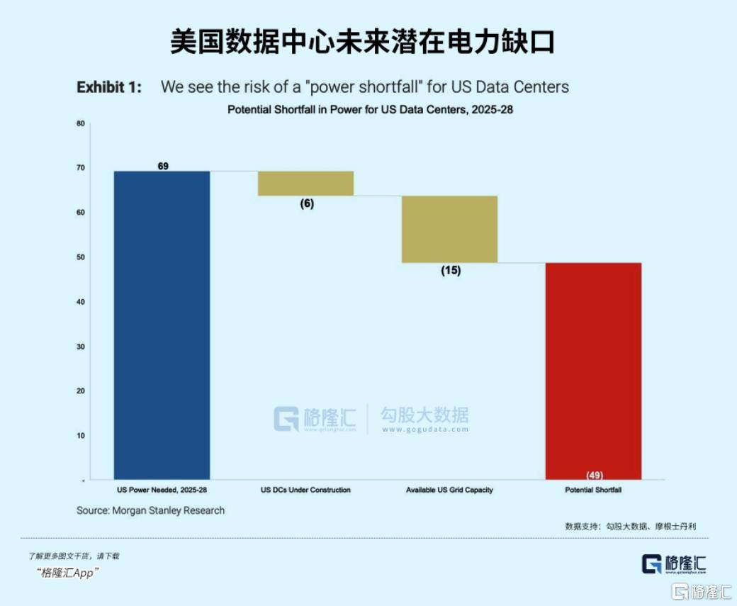 大摩近期研究显示,2025至2028年,美国数据中心潜在电力缺口将达到惊人的49GW。