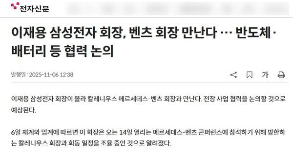 半导体与电池:三星电子DS部门(半导体业务)和三星SDI目前为宝马、奥迪等车企供应车用半导体和电动汽车电池,但与奔驰的合作尚未正式展开。此次会晤可能推动双方在该领域的突破。
