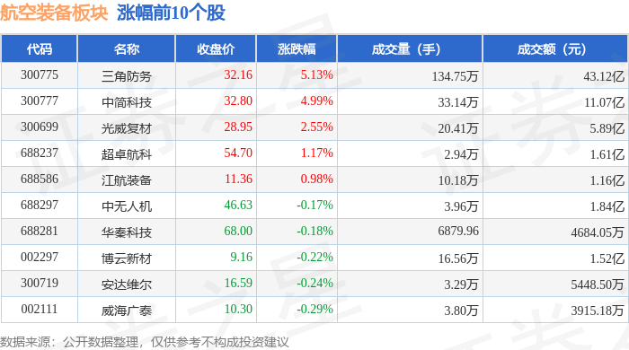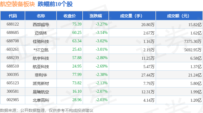 证券之星消息,11月7日航空装备板块较上一交易日下跌0.97%,西部超导领跌。当日上证指数报收于3997.56,下跌0.25%。深证成指报收于13404.06,下跌0.36%。航空装备板块个股涨跌见下表: