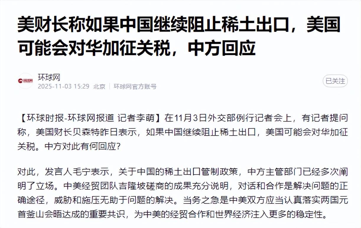 与此同时,美方部分高层官员公开将稀土问题拿到谈判桌上,宣称若中国以管制方式阻断稀土供应,美方可能采取加税等反制措施。