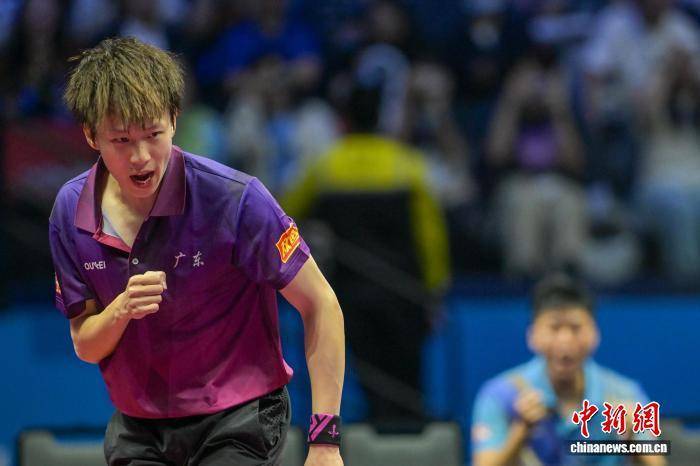11月9日,第十五届全国运动会(十五运会)乒乓球成年组男子/女子单打1/16决赛在澳门银河综艺馆举行。男子单打比赛中,广东队选手林高远4:2战胜福建队选手程靖淇;香港队选手黄镇廷4:3战胜上海队选手赵钊彦。女子单打比赛中,辽宁队选手王艺迪4:0战胜北京队选手张翔宇;香港队选手杜凯琹0:4不敌辽宁队选手刘斐。林高远、黄镇廷、王艺迪和刘斐晋级下一轮。图为广东队选手林高远在比赛中。中新网记者 陈永诺 摄