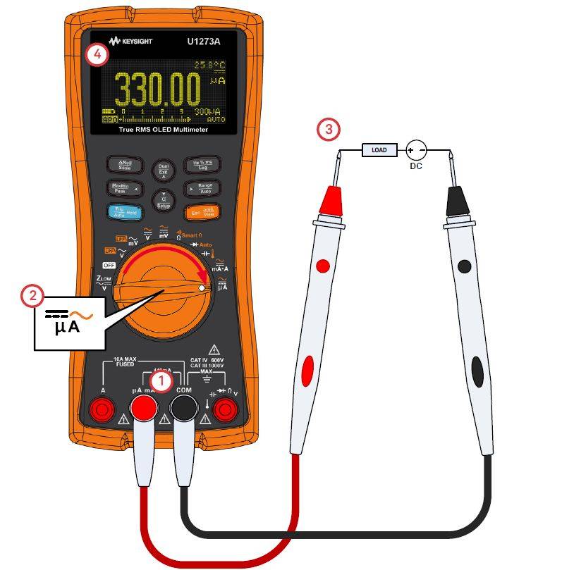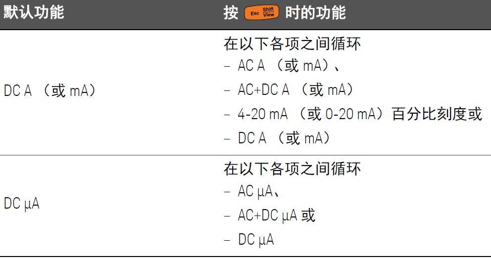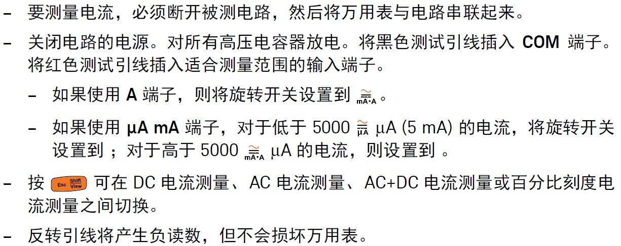 旋转功能开关至电流测量档位(参考表2-17/2-18量程表)