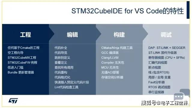 STM32CubeIDE for VS Code支持Windows / Linux / macOS全平台;且通过CMSIS-PACKs支持所有STM32 MCU产品系列。