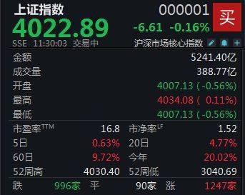 11月14日,A股弱势整理。截至上午收盘,上证指数跌0.16%报4022.89点,创业板指跌1.74%,北证50涨0.2%,科创50跌1.5%,中证A500跌0.8%。A股半日成交1.25万亿元。