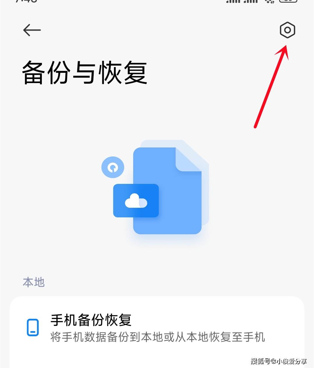 第二步,打开备份与恢复之后,点击右上方的齿轮图标