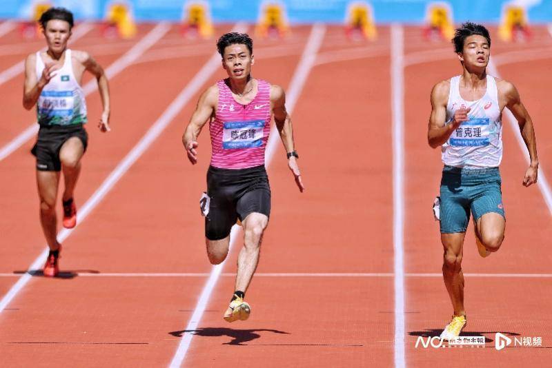 广东队陈冠锋跑出10秒35,以小组第三晋级复赛。