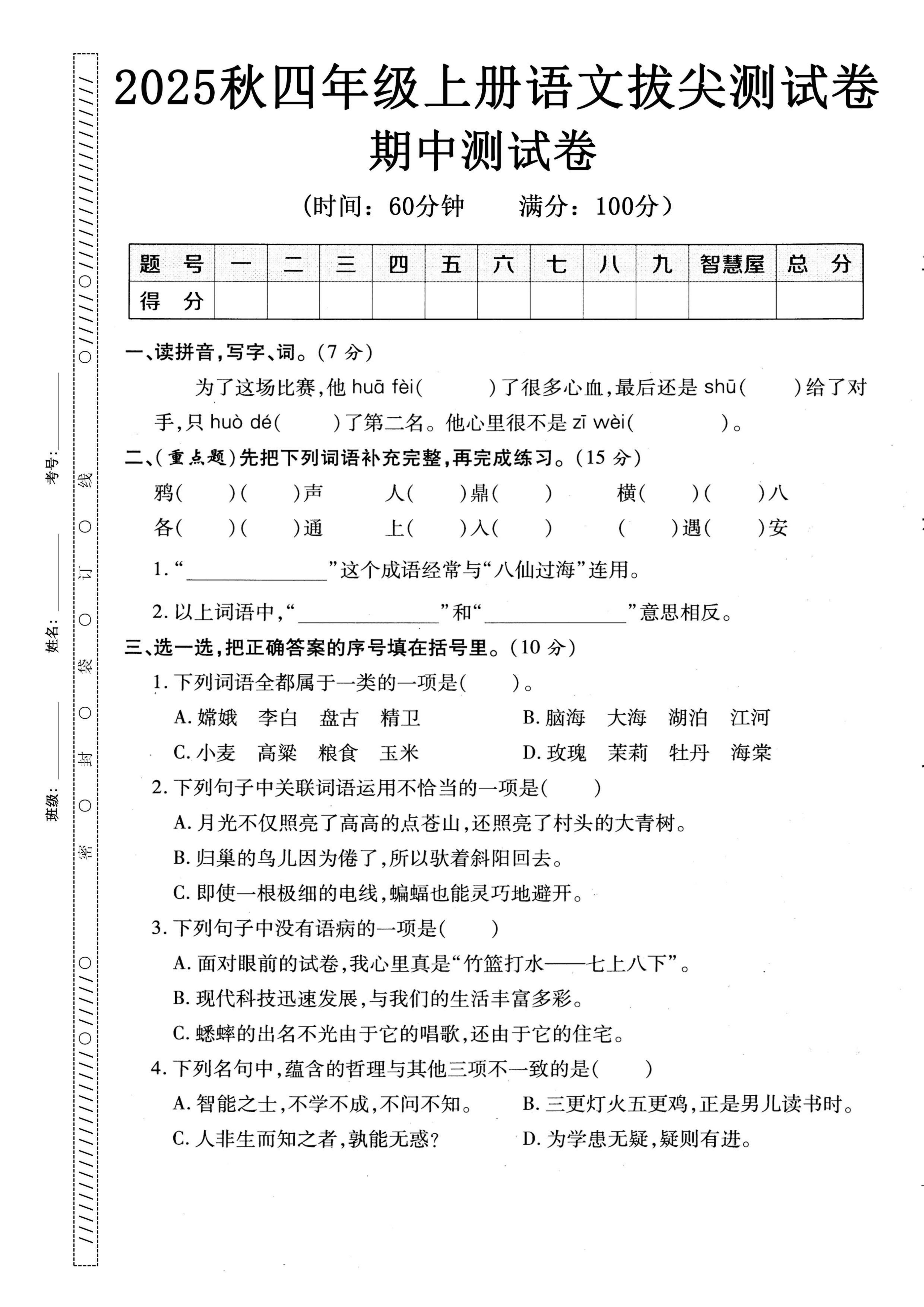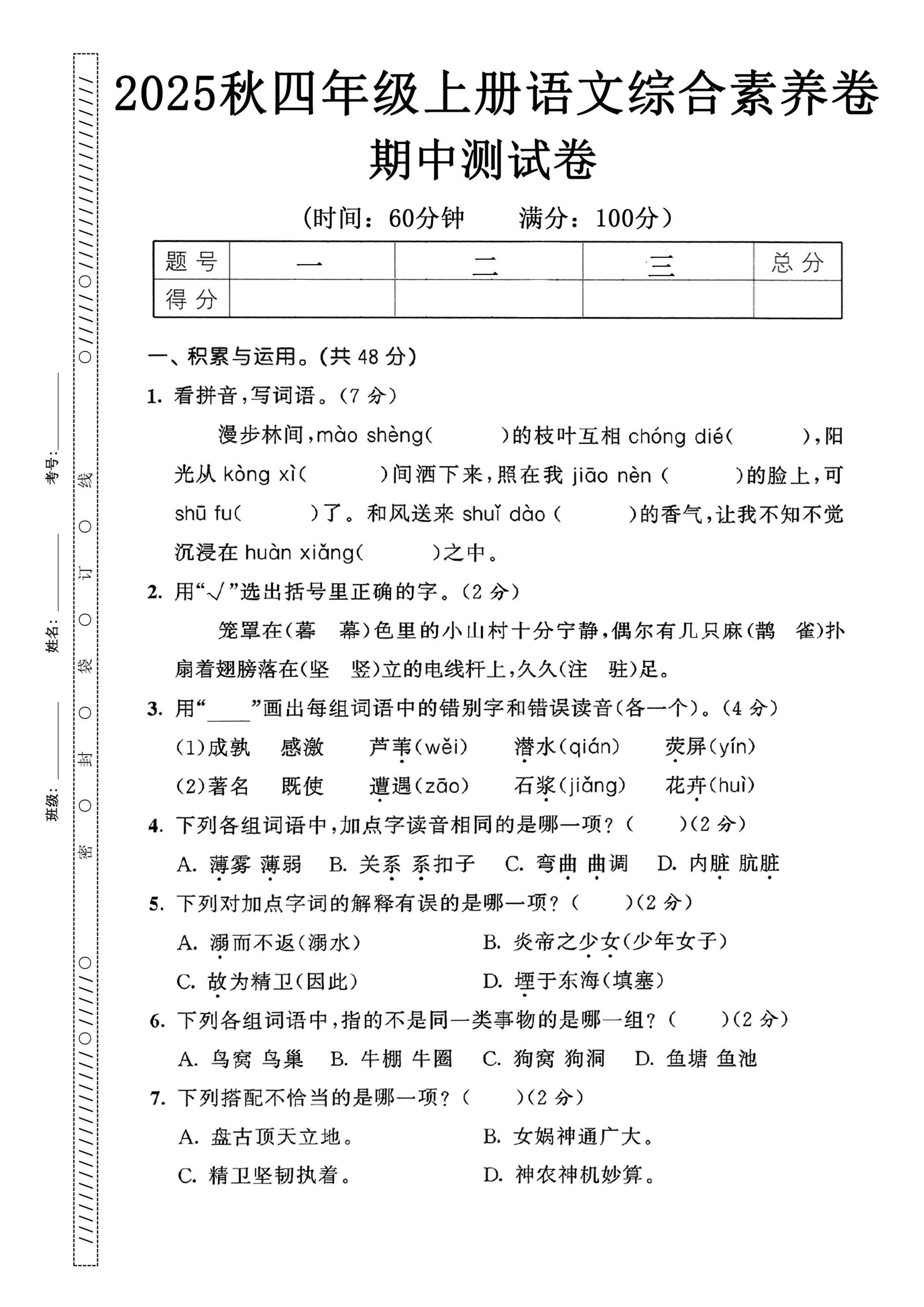 2025年秋季小学语文学一年级、二年级、三年级学生使用的是2024新课标改版后新版教材!为了方便广大学生日常学习,我们整理了新版期中押题卷,以图片的形式呈现给大家,希望对同学们的学习有所帮助。