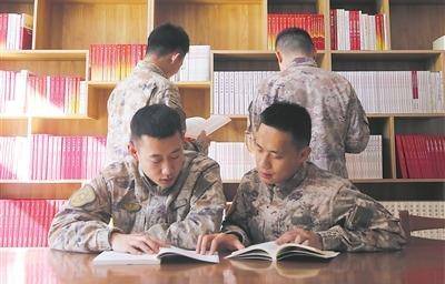 ↑陆军某试验室战士在图书室学习。张旭 摄